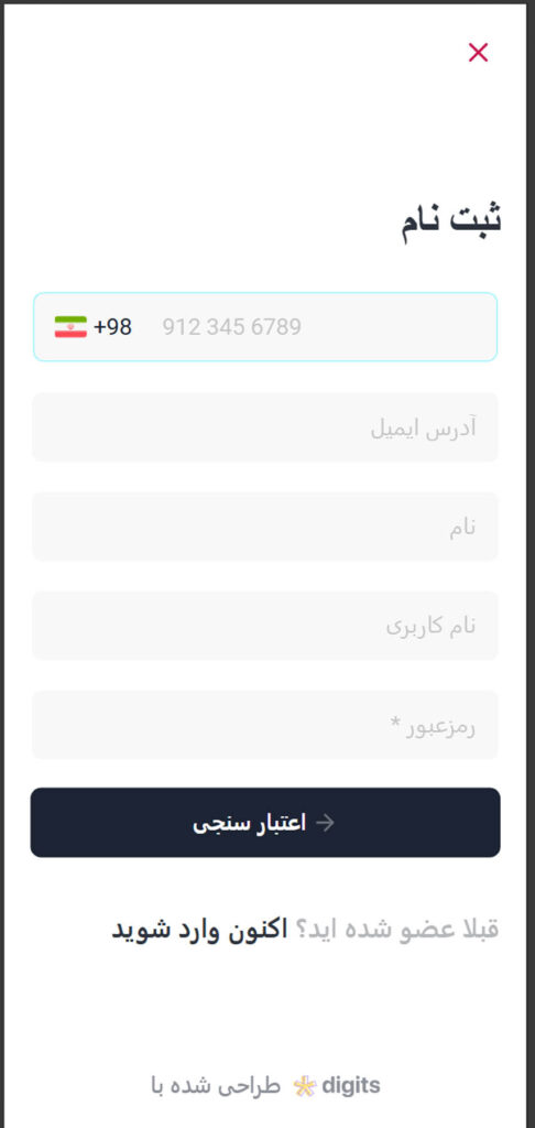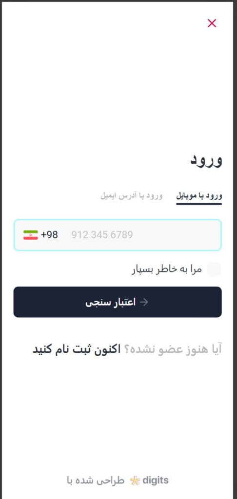 1.ابتدا روی ورود/ثبت نام کلیک کنید.