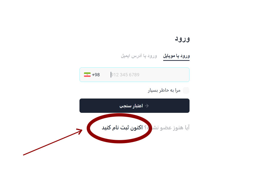 2.اگر از قبل ثبت نام کرده اید شماره خود را وارد کنید.در غیر این صورت روی گزینه ثبت نام کلیک کنید.