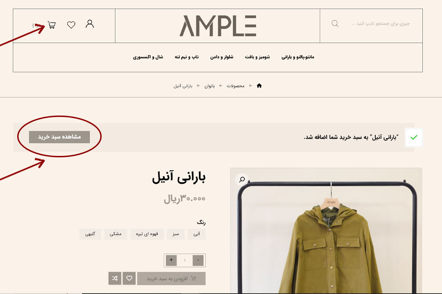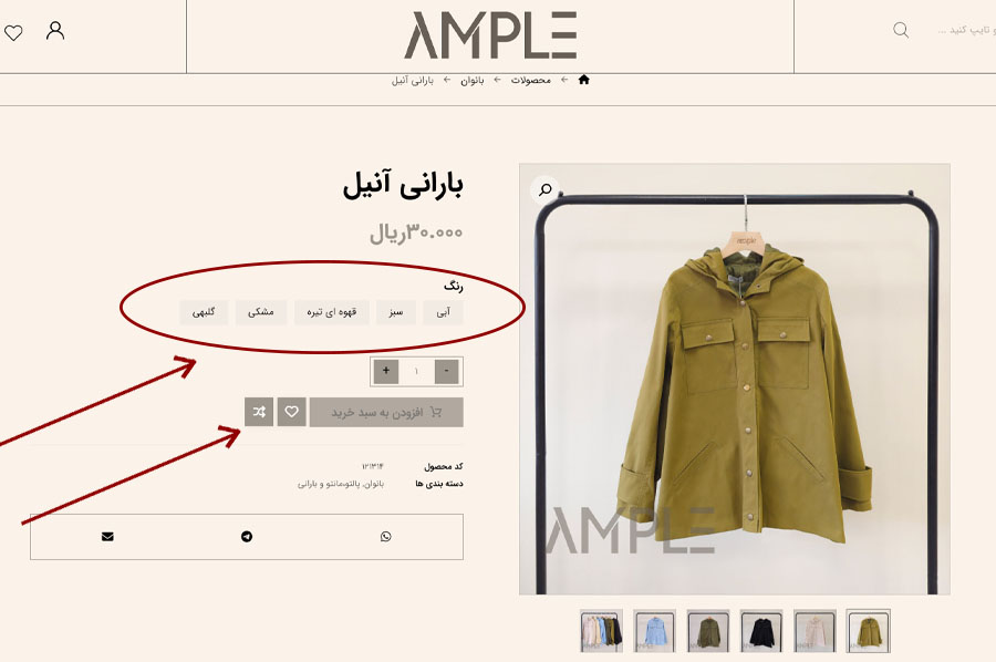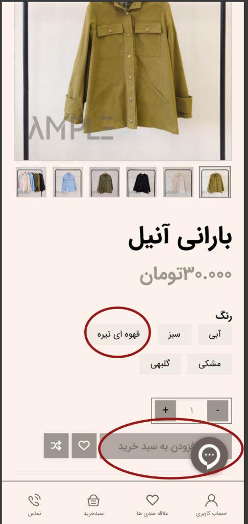 4.محصول خود را انتخاب کنید روی رنگ مورد نظر کلیک کنید و به سبد خرید خود اضافه کنید.