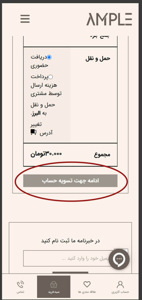 6.سپس روی گزینه ی تسویه حساب کلیک کنید.