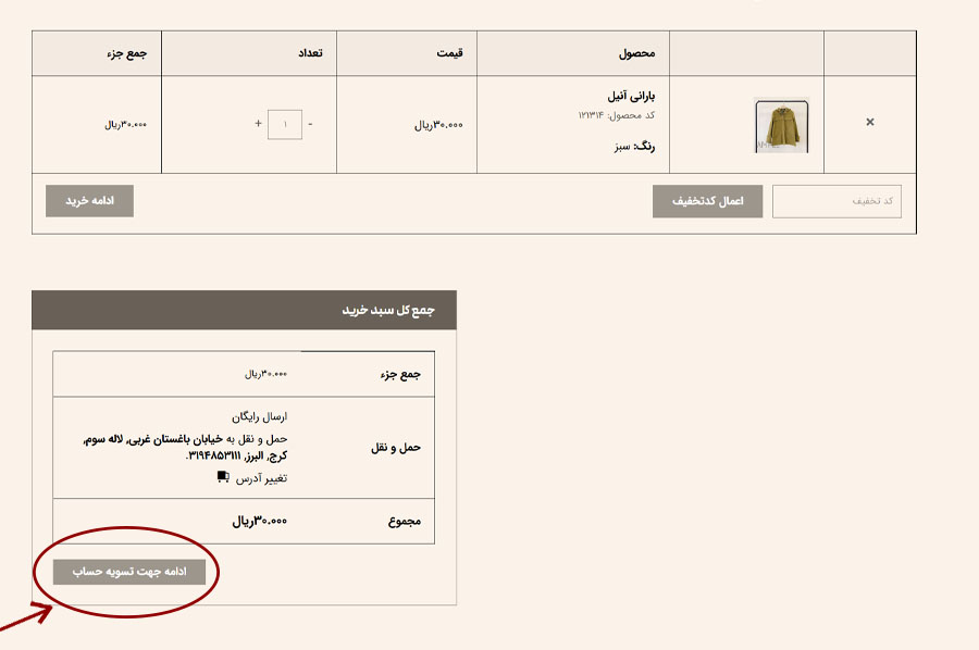 7.اگر کد تخفیف دارید در این قسمت وارد کنید.