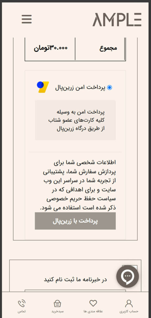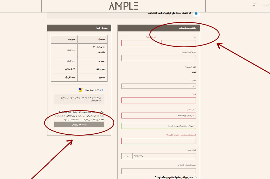8.اطلاعات خود را به صورت کامل وارد کنید.سپس روی گزینه ی پرداخت کلیک کنید.